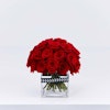£ 150This classic, ready-made glass cube holds a hand tied arrangement of 35 beautiful roses. Cube size14cm x 14cm