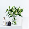 £ 205There is no better gift than classic and elegant lilies. A beautiful arrangement that fits perfectly within any home. This bundle is paired exclusively with two gifts from Atayab Al Marshoud. The best-selling Marshoud No.4 perfume fragrance for them and uplifting Malmool Marshoud to fill their home with beautiful scents of orange, jasmine, amber and musk.