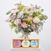 £ 109Perfectly pretty and reminiscent of British summer meadows. Light up their day with this stunning bouquet featuring playful pink roses, light purple limonium, pink alstroemeria, and classic baby pink carnations. A beautiful gift for a loved one or dear friend comes alongside a delectable Charbonnel et Walker Trio Truffles gift set. A great gift for someone that needs a little pick me up.