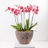 £ 175A deluxe textural planter full of lush coral orchids.