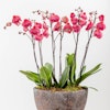 A deluxe textural planter full of lush coral orchids.