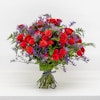 £ 85Express your love through this fiery red and purple arrangement. Featuring vibrant spray roses and fragrant limonium, make someone's day with this beautiful arrangement that adds a pop of colour to any environment.