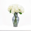 Bring joy to your loved one's day with the enduring grace of white hydrangeas presented in a smoky-coloured glass vase. This refined arrangement seamlessly merges timeless beauty with modern sophistication, making it an ideal enhancement for any home or office setting. The luxuriant white hydrangeas radiate purity and elegance, while the smoky-coloured glass vase introduces an element of allure and fascination to the ensemble. Whether as a treat for yourself or a cherished gift for a loved one, indulge in the exquisite allure of white hydrangeas in a smoky-coloured glass vase and infuse any space with effortless charm.