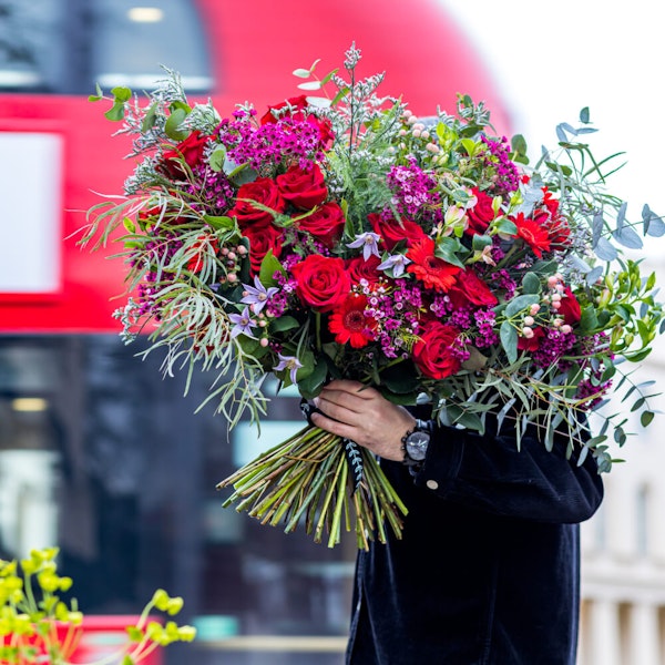 £ 299The Mayfair bouquet is inspired by the shiny red Ferraris that line up parked in front of five-star hotels, to everybody’s favourite little red box from Cartier. The colour of love and luxury, this bouquet is made up of deep red roses and vibrant wax flowers, that showcase how much thought you have put into this beautiful gift. Perfect for creating a focal point in large living areas.
