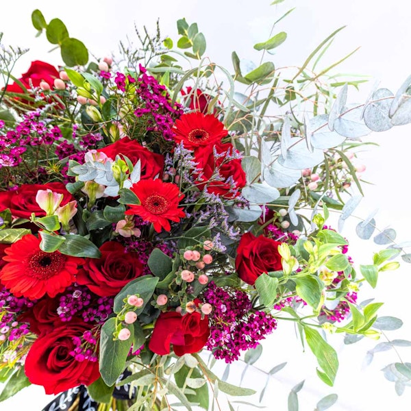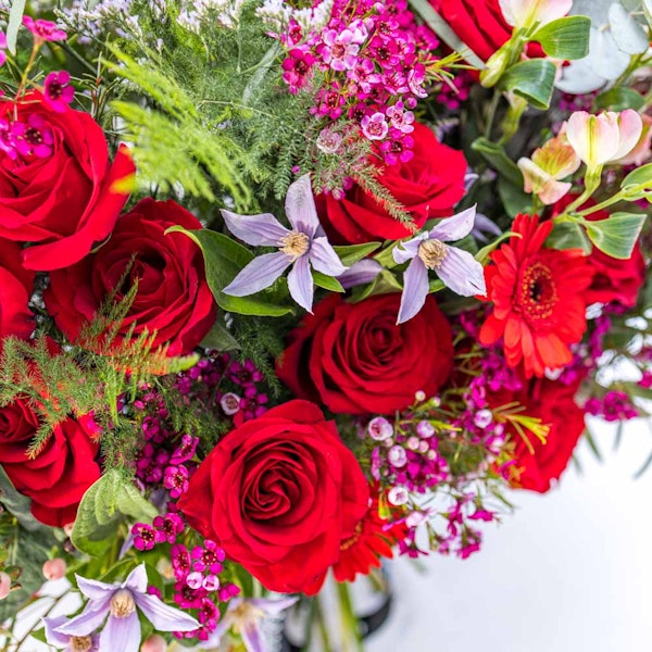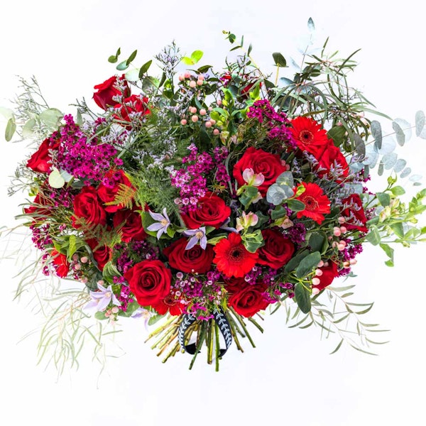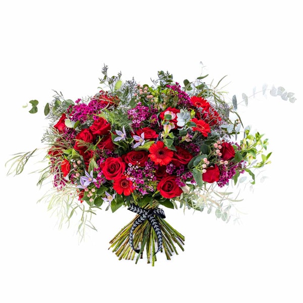 The Mayfair bouquet is inspired by the shiny red Ferraris that line up parked in front of five-star hotels, to everybody’s favourite little red box from Cartier. The colour of love and luxury, this bouquet is made up of deep red roses and vibrant wax flowers, that showcase how much thought you have put into this beautiful gift. Perfect for creating a focal point in large living areas.