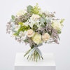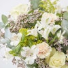 Freshen up your space with this beautiful bouquet inspired by the wildflowers that populate British meadows. This arrangement features bright white roses, Solidago, white alstroemeria, and classic peach carnations. A beautiful gift for a loved one or dear friend.