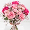 All of the pinks! Pink spray rose, fuchsia rose and coral roses, all mixed in with beautiful pink gypsophila.  Gift this bouquet today to share a little love.